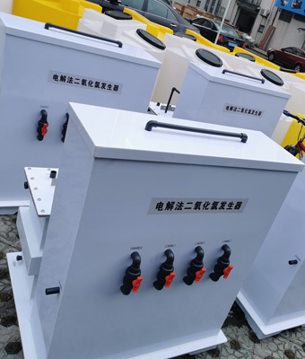 電解法二氧化氯發生器的原理是電解鹽產生二氧化氯、臭氧、氯、過氧化氫等混合消毒劑。使用原料簡單,原料為鹽(NaCl)純度≥97.50%,消毒效果好。